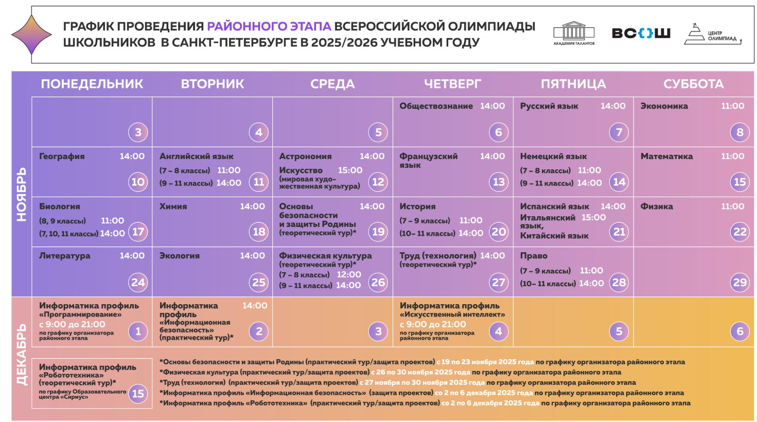 ГРАФИК ПРОВЕДЕНИЯ РАЙОННОГО ЭТАПА ВСЕРОССИЙСКОЙ ОЛИМПИАДЫ ШКОЛЬНИКОВ В 2025-2026 УЧЕБНОМ ГОДУ Открыть(.pdf)